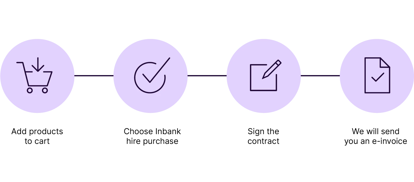 Inbank hire purchase is a flexible payment solution which gives you the ability to pay for the services in instalments. Inbank hire purchase allows you to split a large one-time expense into small monthly payments. Spread the purchase sum over up to 5 years. The first payment is due only a month later.