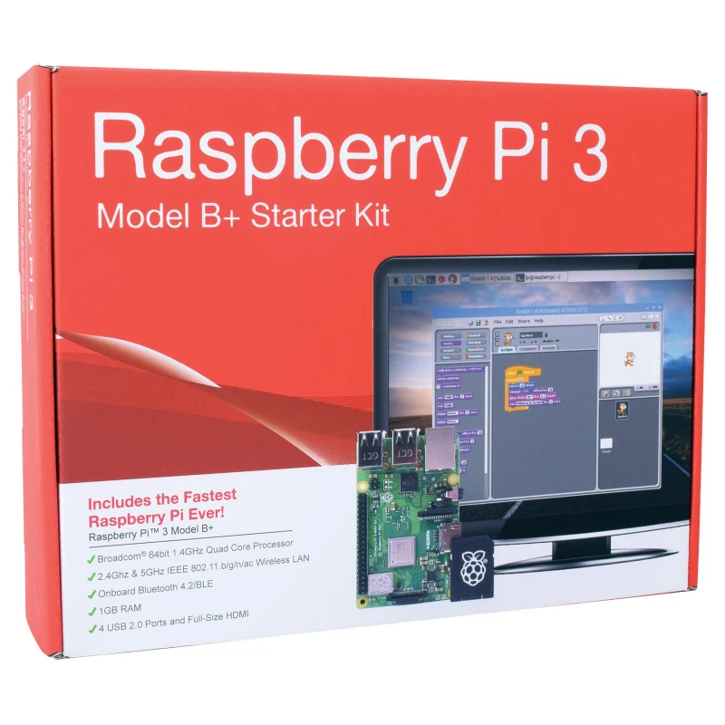 RASPBERRY PI 3 Model B+ STARTER KIT available with RASPBERRY PI 3 B+ module and required accessories. Raspberry Pi 3 model B+ is a credit card sized single board computer that plugs into a monitor or TV and uses a standard keyboard and mouse. This is a little PC which can be used for many of the things that desktop PC does. The design is based on Broadcom BCM2837B0 Cortex-A53 (ARMv8) 64bit system on chip with 1.4GHz quad core processor and 1GB LPDDR2 SRAM. It works on reliable operating system such as Raspbian, Windows 10 IoT Core, Arch Linux ARM, RISC OS, OSMC and Pidora.