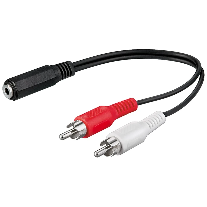 3.5 mm, 3-pin socket --- 2xRCA plug. Cable length 0.2 m.