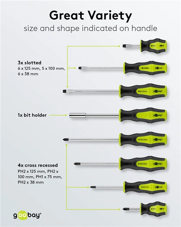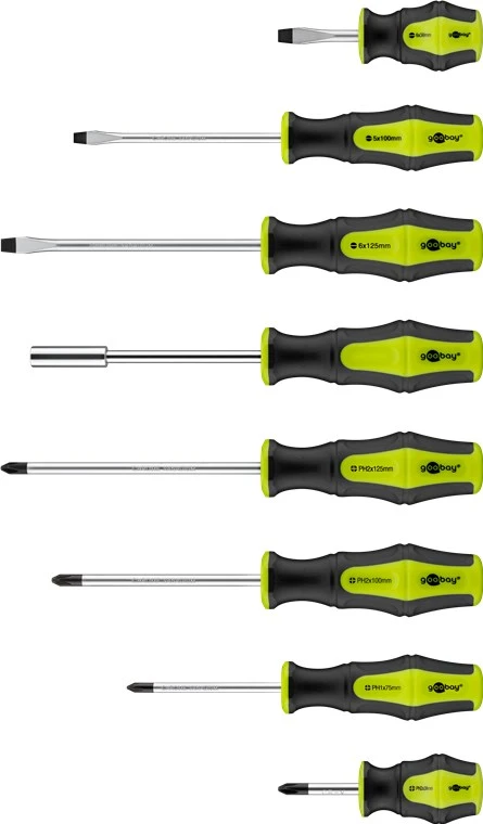 Slotted Screwdrivers: 3x (6 x 125 mm, 5 x 100 mm, 6 x 38 mm)