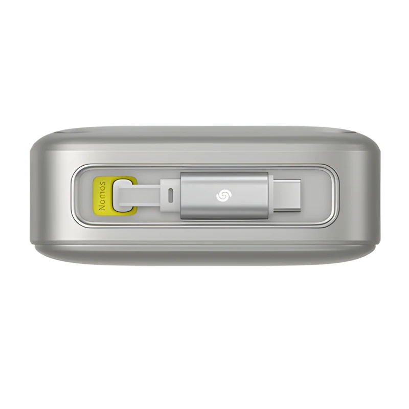 - Features an integrated, retractable USB-C cable (up to 70 cm) for convenient charging without needing separate wires.
