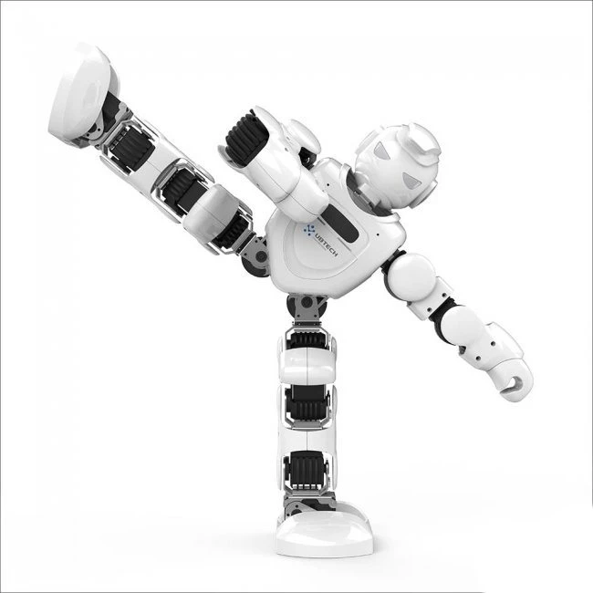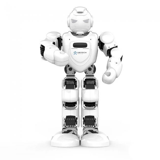 Thanks to the gyroscope built into the Alpha 1E, the robot is able to stand up automatically after a fall, and thanks to its infrared distance sensor, the Alpha 1E can also avoid obstacles while moving. The additional panel on the chest of the 1E has additional sensors. Discover the many new features the Alpha 1E robot offers!