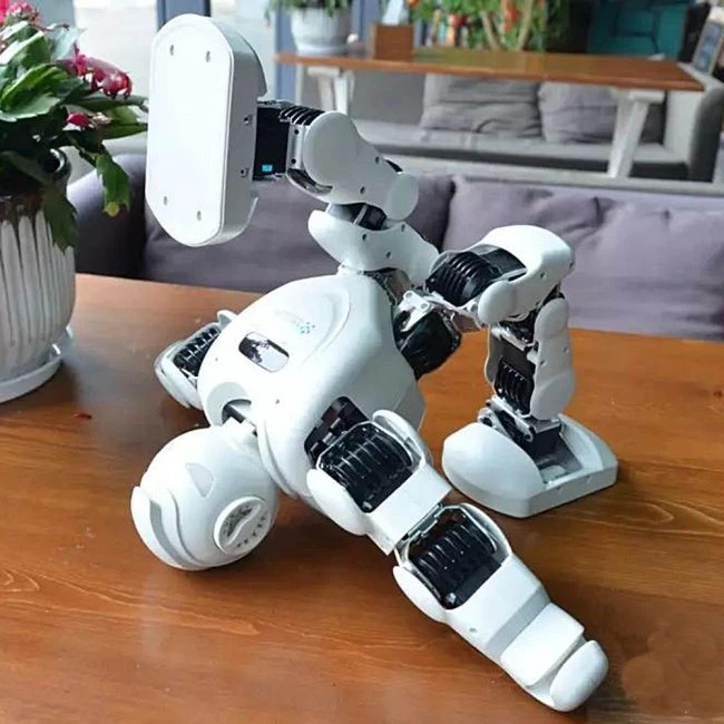 The Alpha1E is not only a spectacular state of the art, but a thoughtful, entertaining invention of the robot family of mimics, whose intuitive programming capabilities help develop the affinity of children and adults for computing.