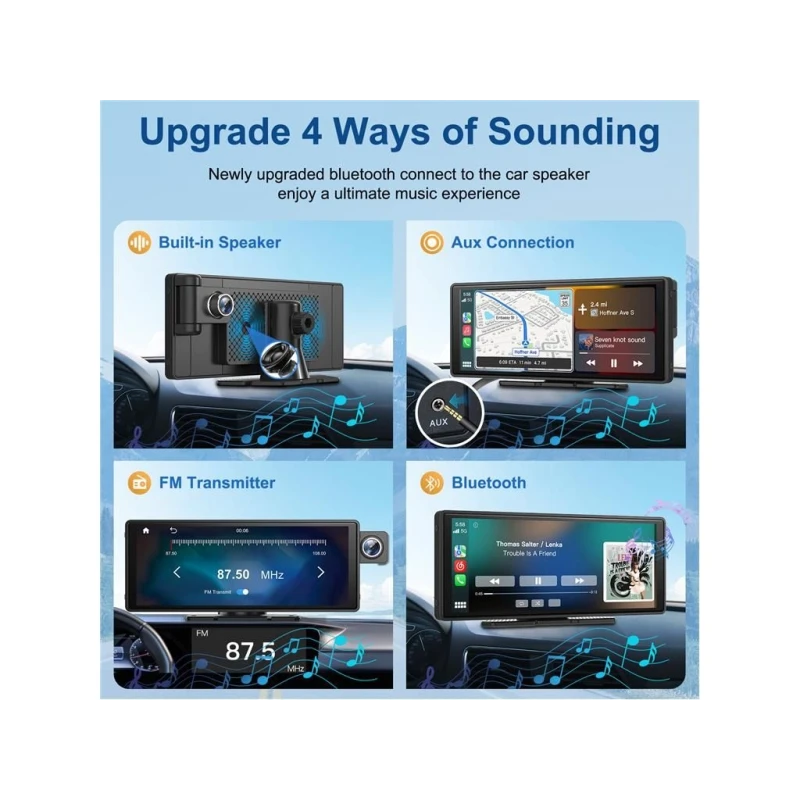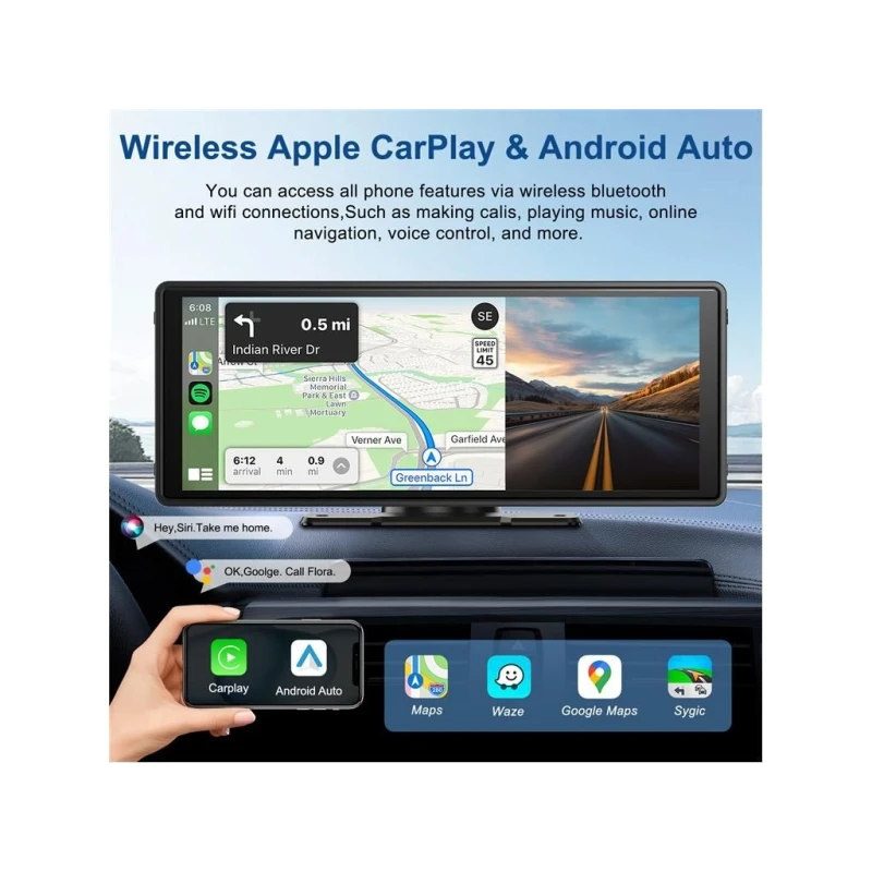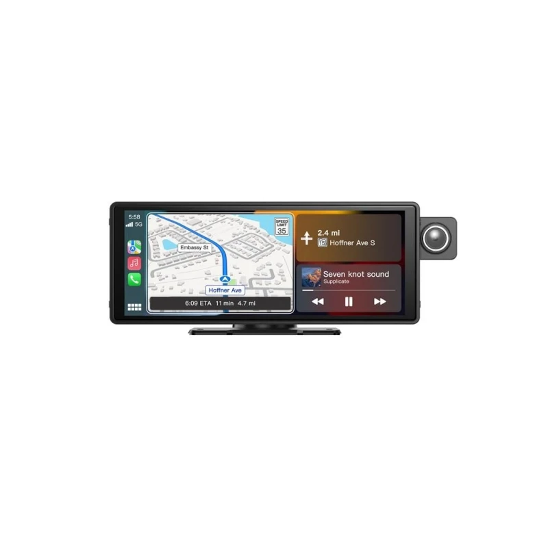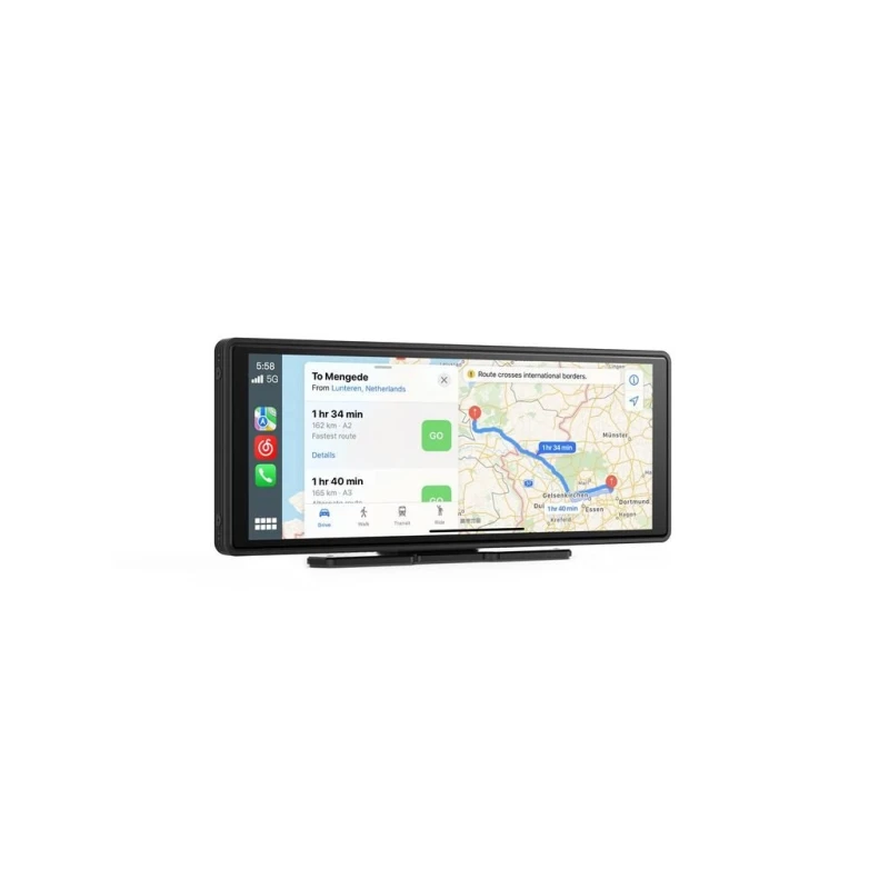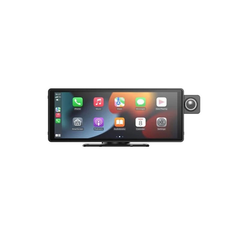 The multimedia player with a 10.26-inch IPS screen offers a sharp resolution of 1600x600. Its touchscreen supports Wireless CarPlay and Android Auto, allowing easy access to apps.