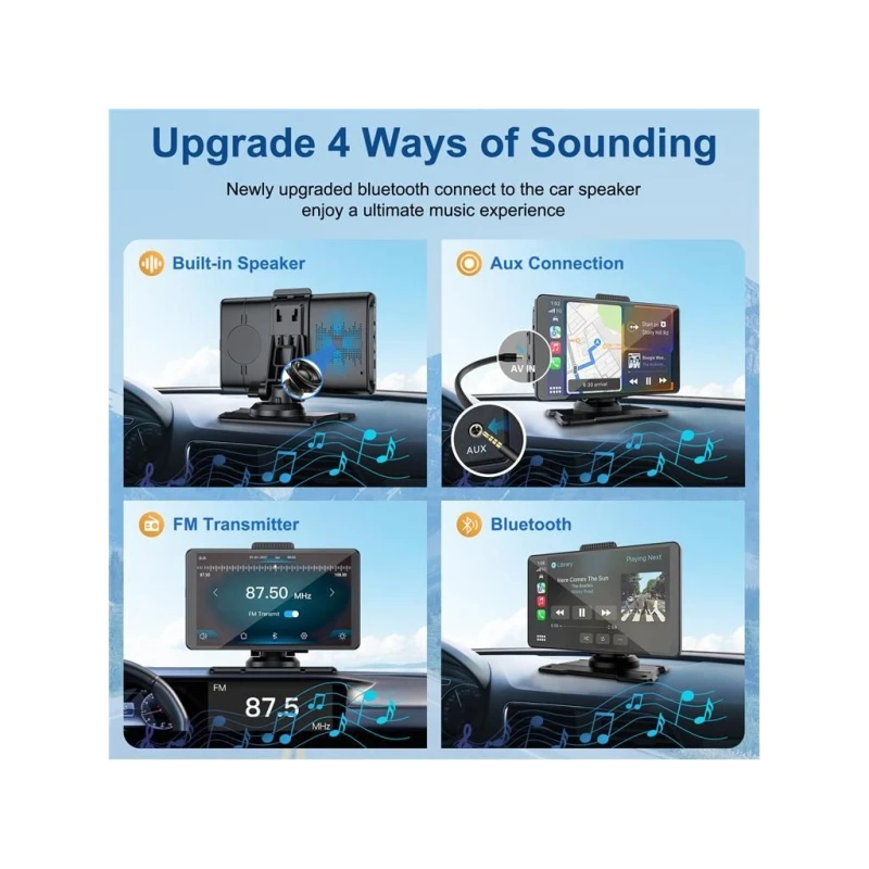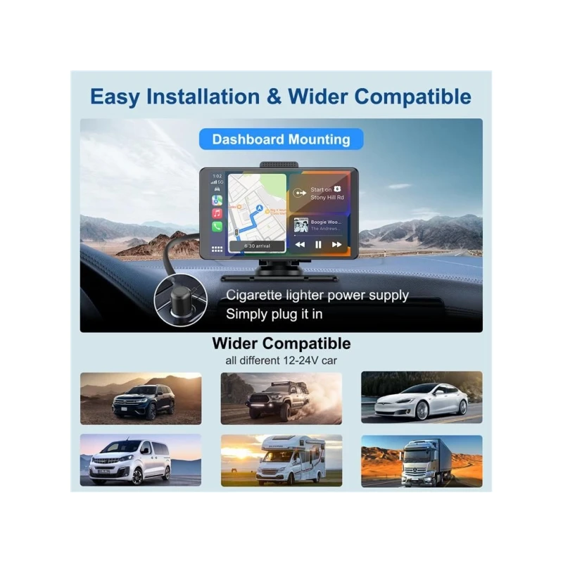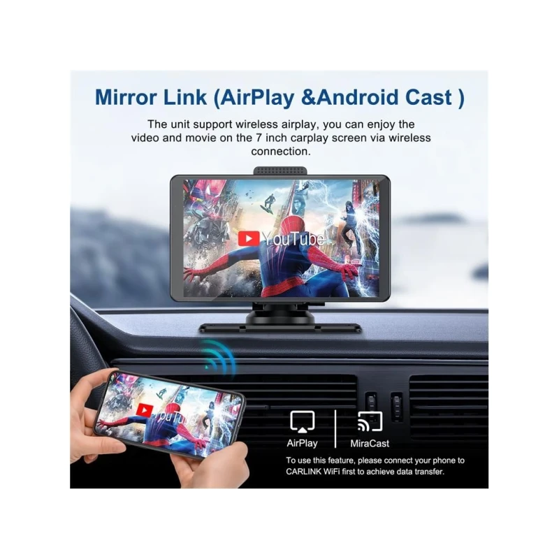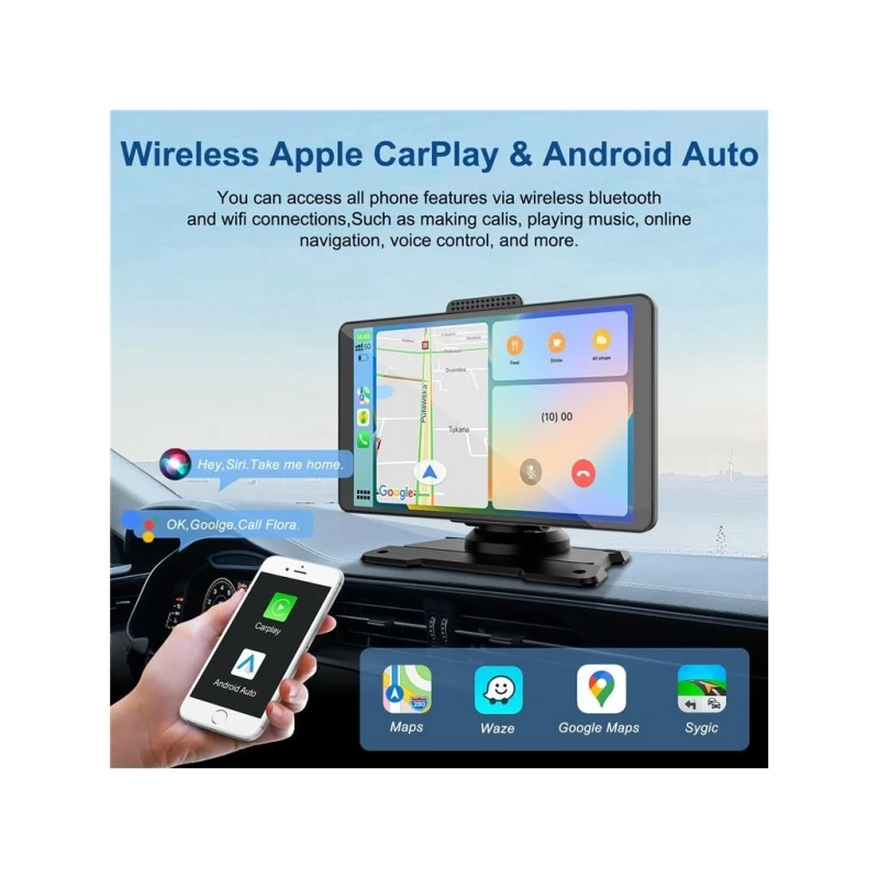This 7-inch IPS screen multimedia player is the perfect addition to any car. It has a 1024 x 600 resolution and a responsive touchscreen that supports both wireless CarPlay and Android Auto.