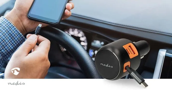 Charge smarter and faster on the go with the Nedis Dual-Port Car Charger, delivering a powerful 60W total output across two ports and a built-in retractable USB-C™ cable. Designed for maximum convenience and performance, it allows you to charge devices simultaneously—making it an ideal solution for drivers with multiple gadgets or passengers needing a quick power boost.