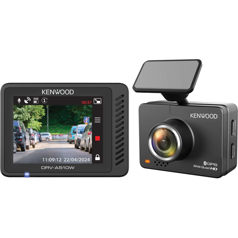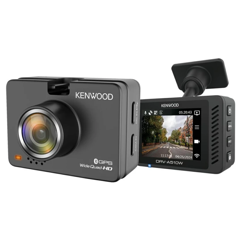 The KENWOOD DRV-A510W dashboard camera records ultra-sharp 2K Quad HD video, ensuring clear recording even while driving. Wireless connectivity allows you to manage camera data using the KENWOOD DASH CAM MANAGER smart app (IOS & Android) and share recorded videos directly to social media.