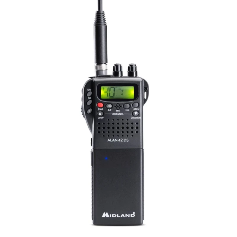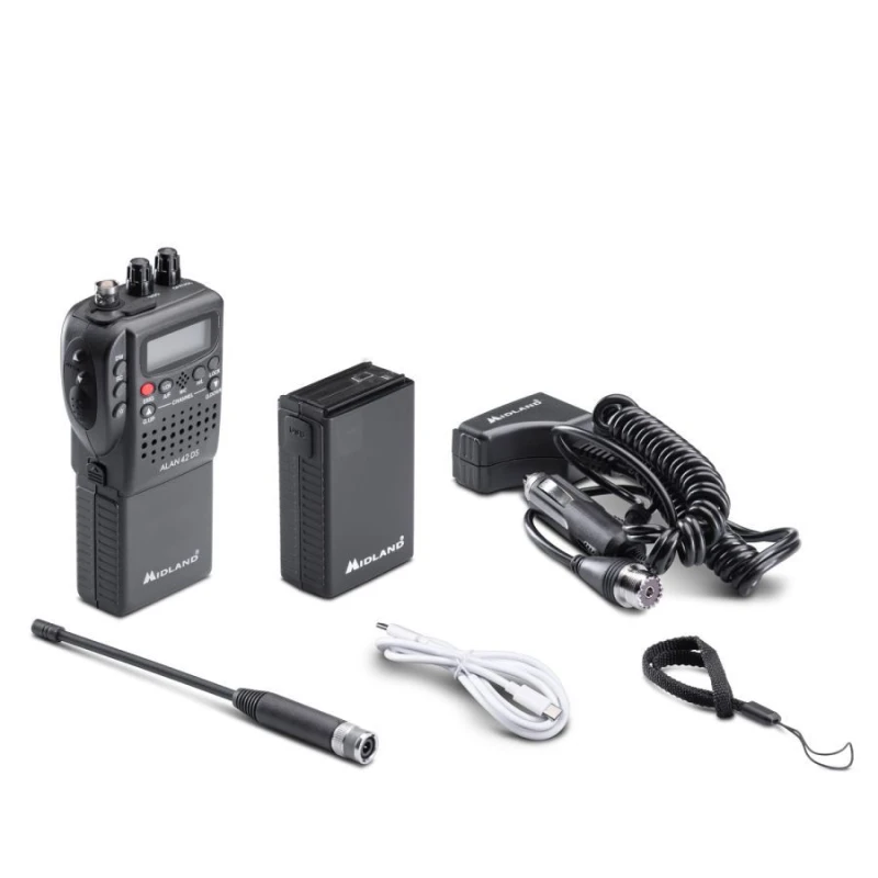 The Midland Alan 42 DS Lithium Edition is an advanced portable CB radio featuring digital squelch and a high-performance power system. This multi-standard device is designed for clear communication across various European frequency grids, making it a versatile tool for mobile and field use.