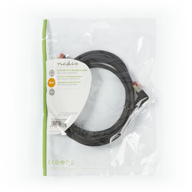CAT6 Patch ethernet cable straight and corner plug 2m, S/FTP gigabit LSZH PiMF, Black
