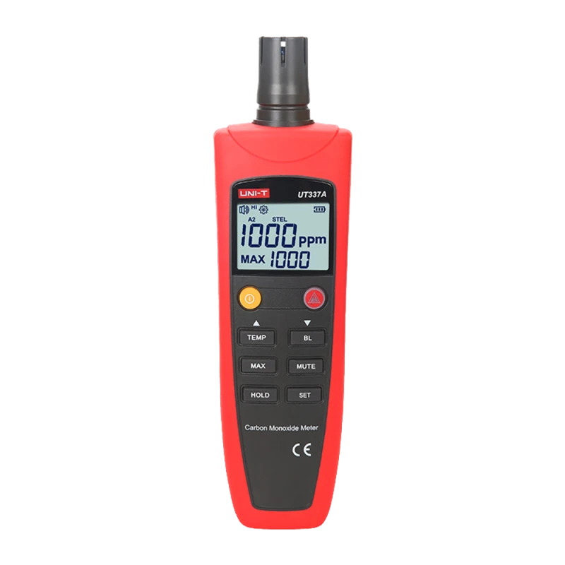 The UNI-T UT337A is a portable carbon monoxide (CO) meter engineered for reliable air quality monitoring in residential, commercial, and industrial settings. It utilizes a high-sensitivity electrochemical sensor to provide fast response times and a long service life for consistent safety detection.