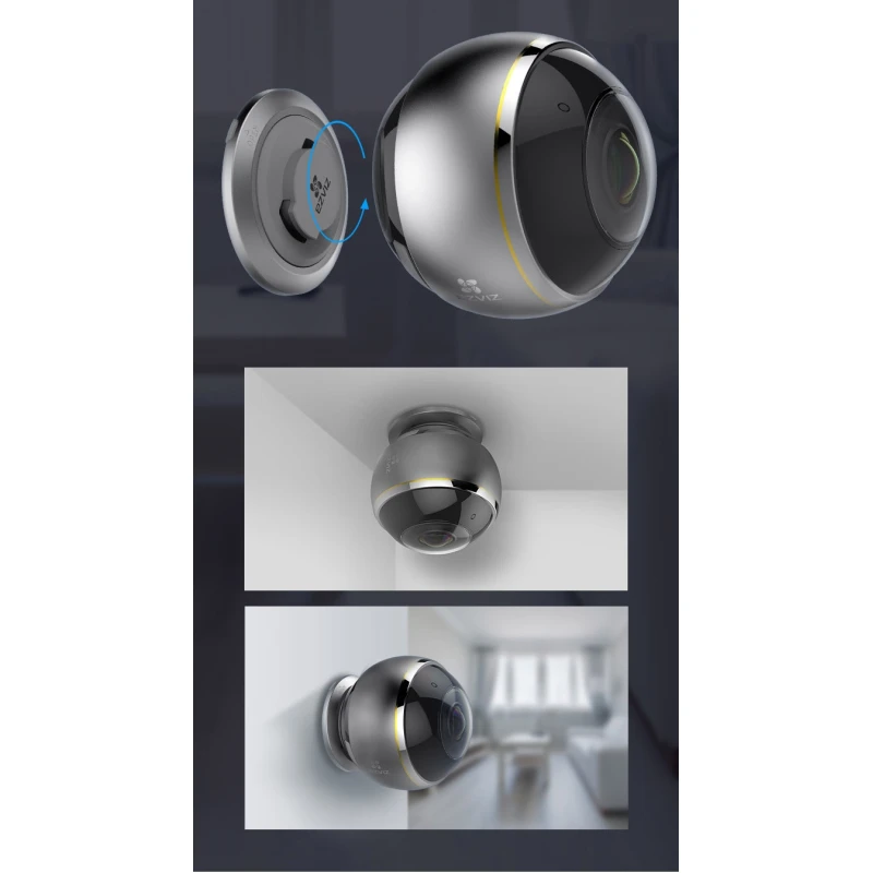 Mini Pano is the first fisheye camera by EZVIZ for internal usage which supports 360° all-direction view. The camera is of high quality metal body designed in an excellent way with high corrosion resistance. Mini Pano provides detailed 3MP video which doesn't lose the quality even when digitally zoomed. The fisheye is remotely controlled via EZVIZ application. Camera can be set both on wall or ceiling and doesn't need any additional lens adjustment for all-round view.