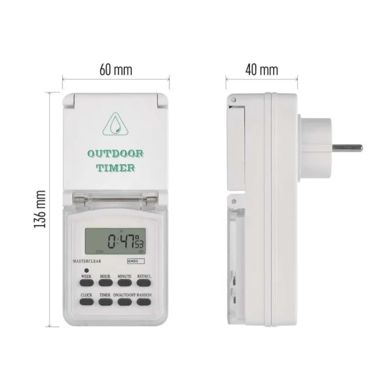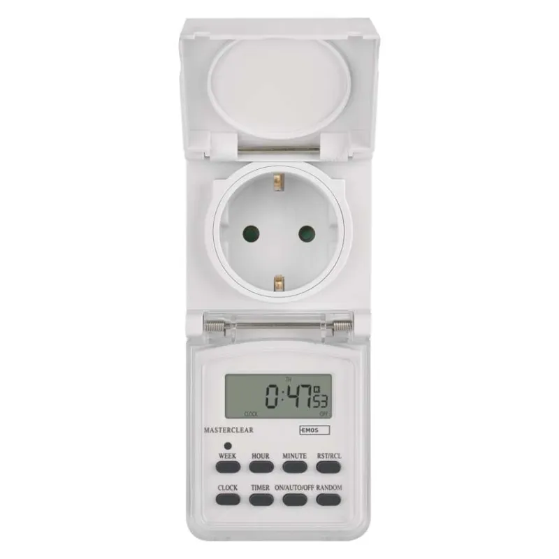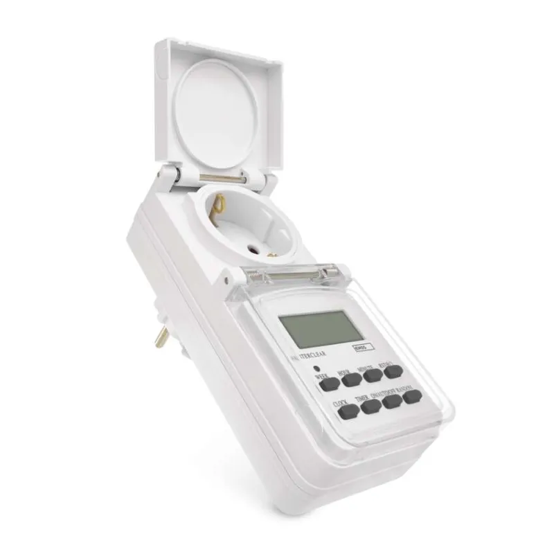 This digital timer socket allows you to preset a specific time to turn your outdoor or household appliances on and off. It is ideal for saving energy and improving the safety of your household.