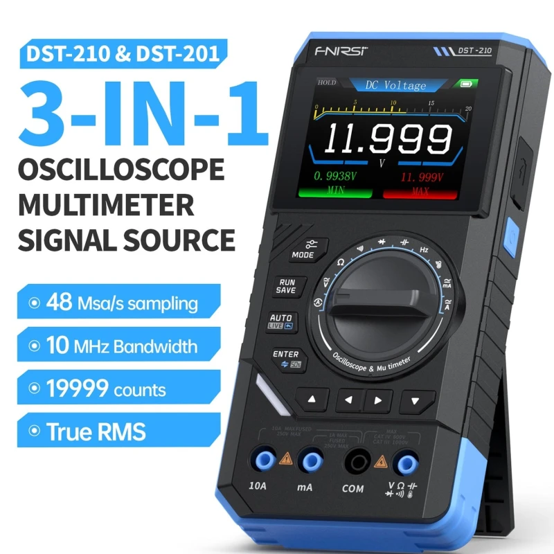 - Integrated 3-in-1 Functionality: Combines a digital oscilloscope, True RMS multimeter, and signal generator.