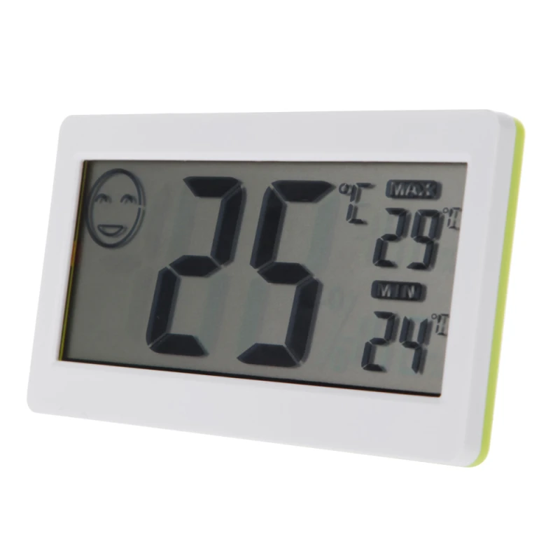 Big screen. Shows internal temperature and humidity. Saves min/max readings.