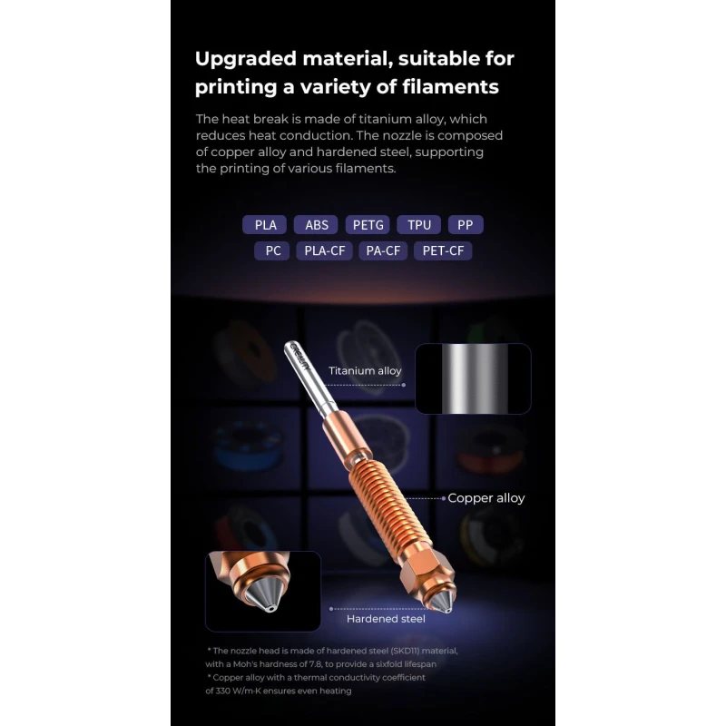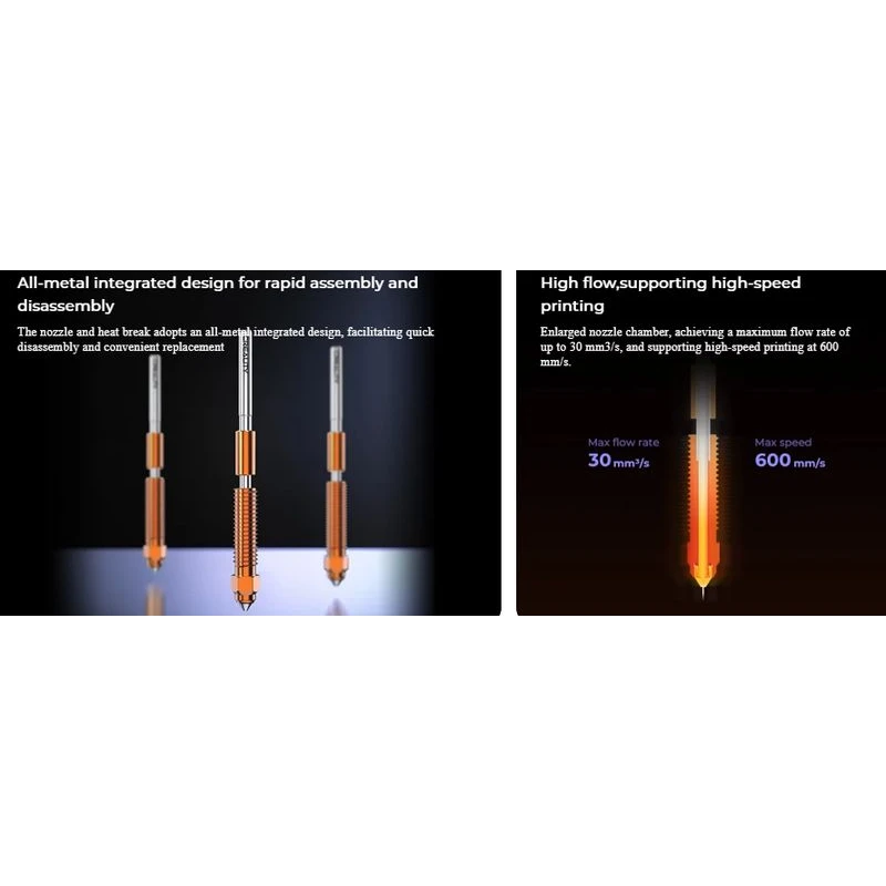 - Quick-Swap Mechanism: Integrated nozzle and heatbreak design enables fast, tool-free assembly and disassembly.