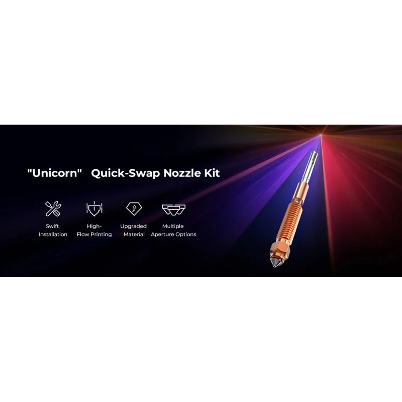 The Creality Unicorn Quick Swap Nozzle 0.4 mm is an integrated nozzle and heatbreak assembly designed for rapid, tool-free replacement. This robust three-metal construction is engineered for high-speed performance and reliable 3D printing.