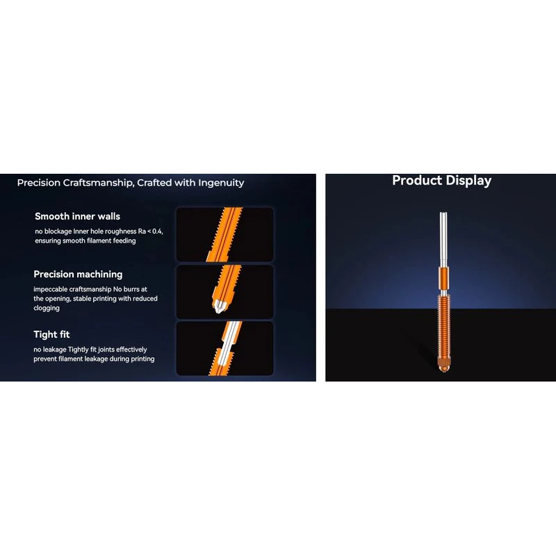 - Ultra-smooth internal walls (Ra < 0.4) prevent clogging and maintain stable filament feeding, ideal for detailed and high-precision printing.