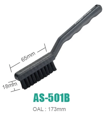 The Pro'sKit AS-501B is an anti-static brush with a long handle, designed for thorough cleaning of components.
