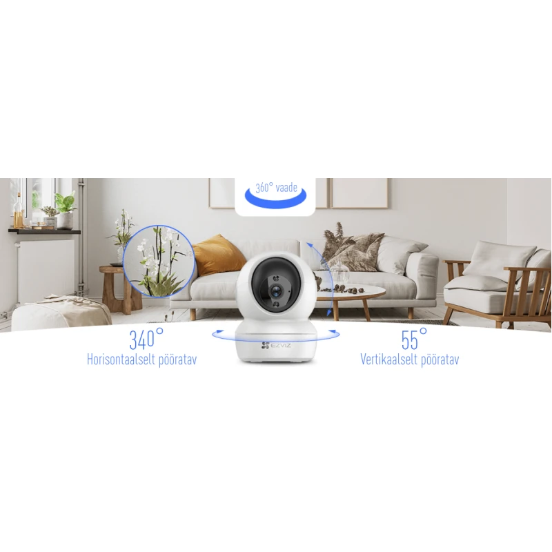 EZVIZ H6C is a capable reversing camera that offers clear 2K 4MP resolution and 360° rotatable image. At night, infrared night vision ensures a clear image up to 10 meters away. Thanks to motion detection and automatic tracking, you keep important areas safe. The H6C also enables two-way talk, making home security interactive. In addition, you can activate sleep mode to protect privacy as needed.