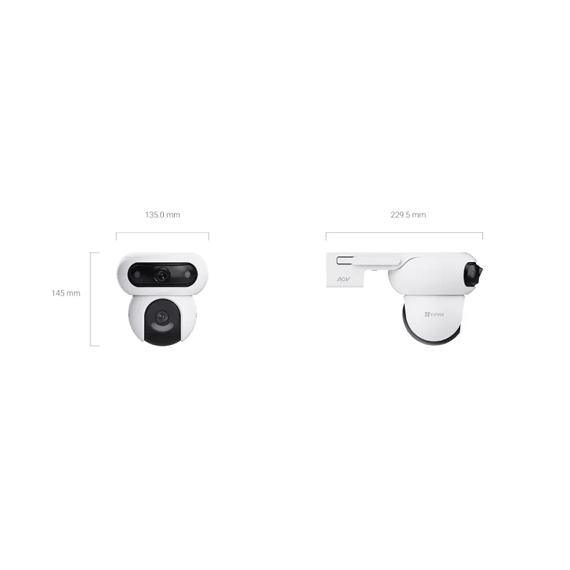 Key Features The camera features dual 2K⁺ lenses and a triple motor Pan/Tilt system for ultra-flexible vision and comprehensive coverage. Its unique Co-Action Tracking technology uses both lenses to detect and automatically track moving persons or vehicles. Advanced AI-ISP technology enhances image quality, reducing motion blur by 70% and improving the signal-to-noise ratio by 300%. Proactive security includes an Active Defense system with a loud siren and two dazzling spotlights, alongside high-quality two-way audio. The robust, IP65 weatherproof design supports local storage up to 512 GB (microSD) or EZVIZ CloudPlay, utilizing H.265 compression.