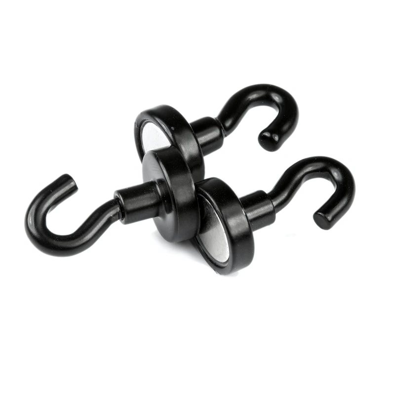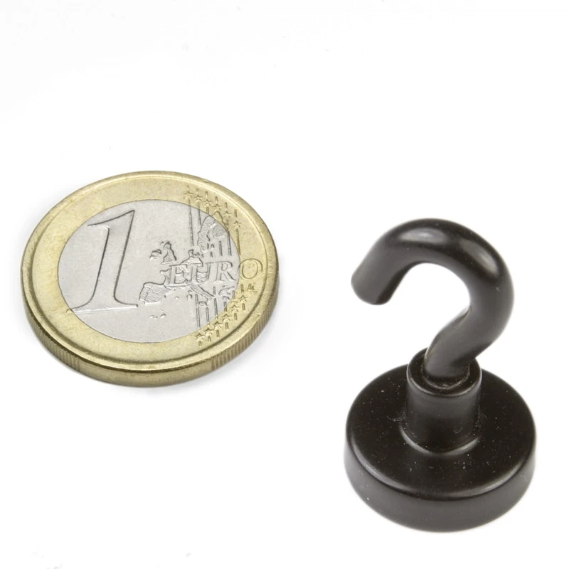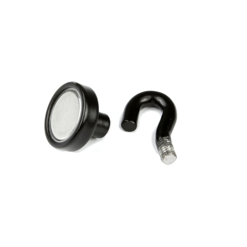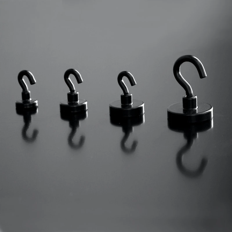 This small but strong magnetic hook features a black powder-coating applied through an electrostatic process, ensuring it is free of harmful substances. Thanks to its discreet colour, the magnetic hook is inconspicuous when mounted on dark surfaces.