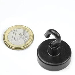 This strong magnetic hook features a durable black powder-coating, making it an excellent choice for discreet mounting on dark surfaces. The coating is applied using an electrostatic process and is completely free of harmful substances, ensuring safety and quality.