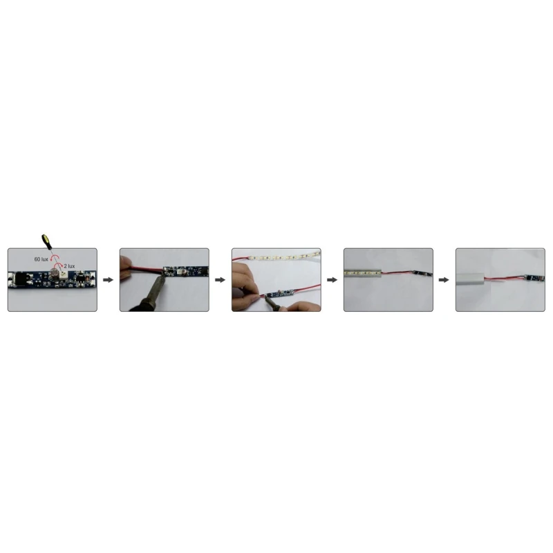 Automatic dusk sensor module 12-24V for LED systems, 2-60 Lux adjustable maximum brightness.