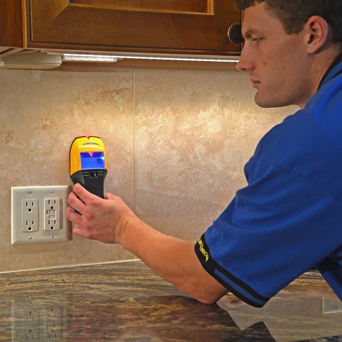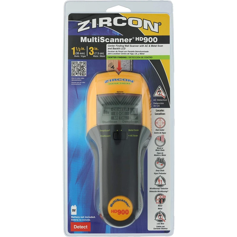 The MultiScanner® HD900 OneStep® is a multifunction stud finder for locating studs, joists, metal, and live AC electrical wiring behind walls, floors, and ceilings.