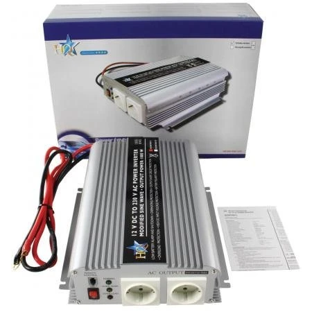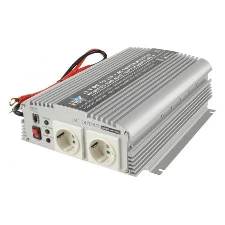 Pidev lubatud koormus:1000WMaksimaalne võimsus:1200WImpulssvõimsus:2000 WSisend:DC 10~15VVäljund:AC 230VVäljundpinge kuju:modifitseeritud siinus (nelinurk)Väljundpinge sagedus:50 HzTarbitav vool tühikäigul:< 0.4 AKasutegur:85~90%Jahutus:ventilaatorAC väljundid:Kaks Schuko pesaMõõdud:310x210x85mmKaal:3.3 kgSisseehitatud kaitsed:Väljundi lühiühendus.Sisendi polaarsuse kaitseSisendi kaitsmine kõrgema pinge eest. Akupinge alarm:DC 10.5 +/- 0.5 VSeadme väljalülimine:DC 10 +/- 0.5 V. Ülekuumenemise kaitse:60 +/- 5CÜlekoormuskaitse:Sulavkaitse: 30A x 5