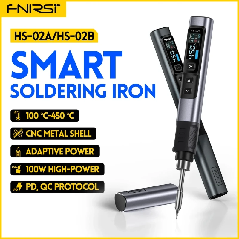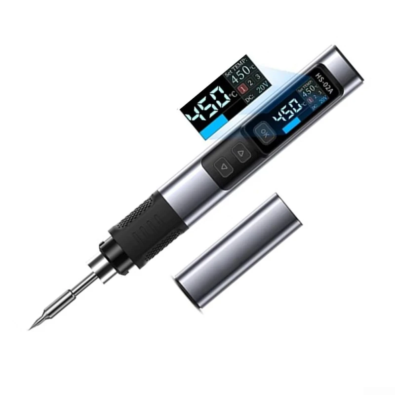 The HS-02A is a lightweight, fast warm-up portable DC soldering iron. With its improved design compared to its predecessor: better grip, shorter body, larger screen and even faster heat-up time.