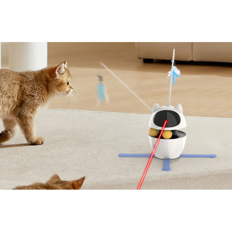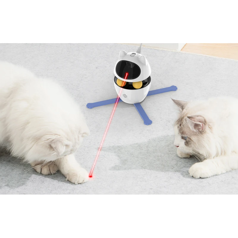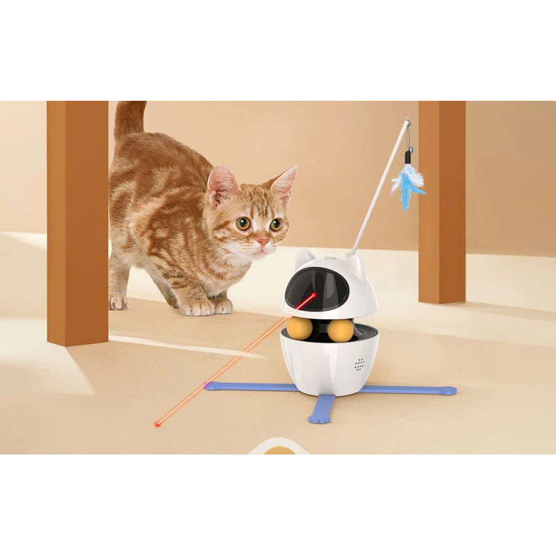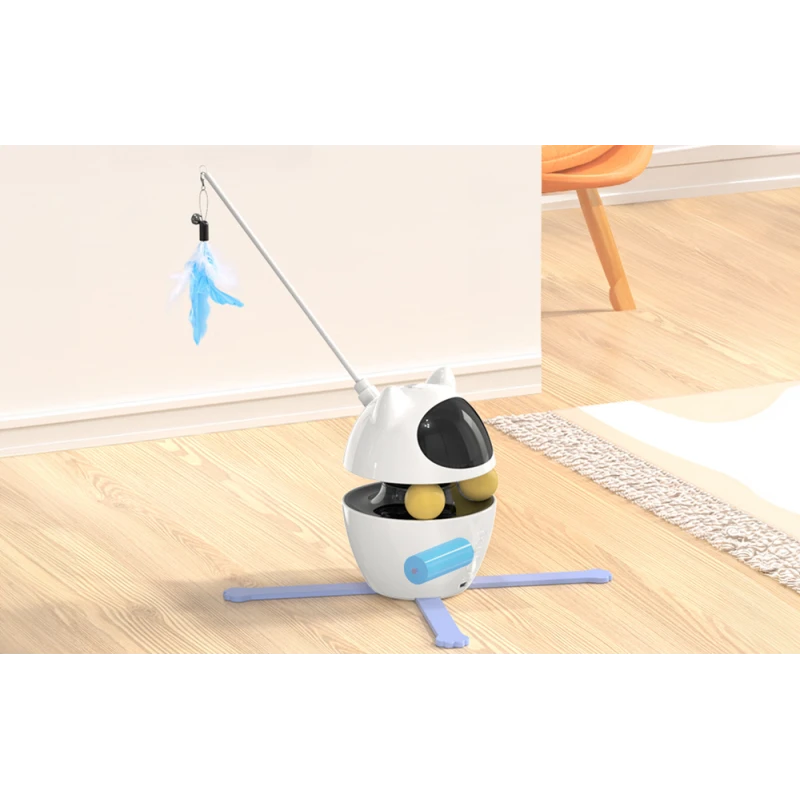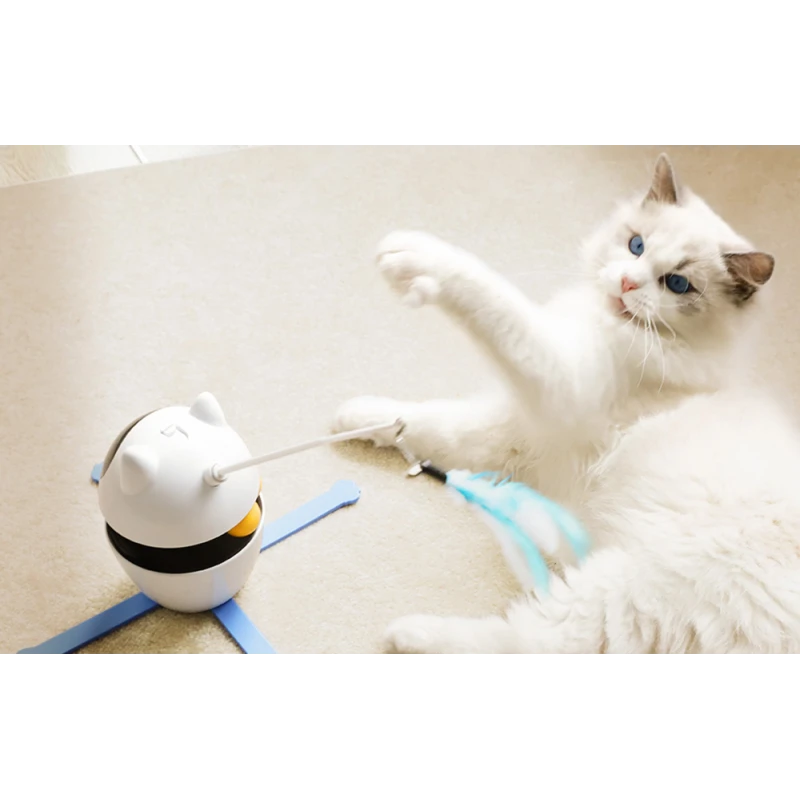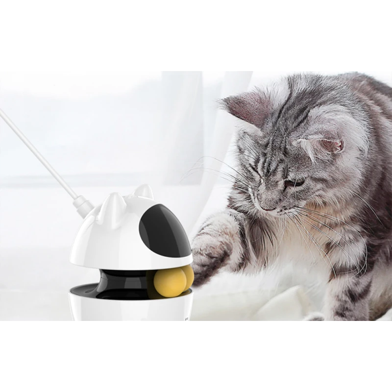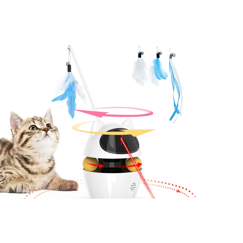 Encourage your cat to be physically active and provide excellent entertainment. The 3-in-1 interactive toy offers laser play, balls, as well as a stick that is finished with feathers. The top of the device rotates 360° and offers up to 3 levels of speed. In addition, it automatically shuts off after 30 minutes, and one charge allows for 5 hours of use.