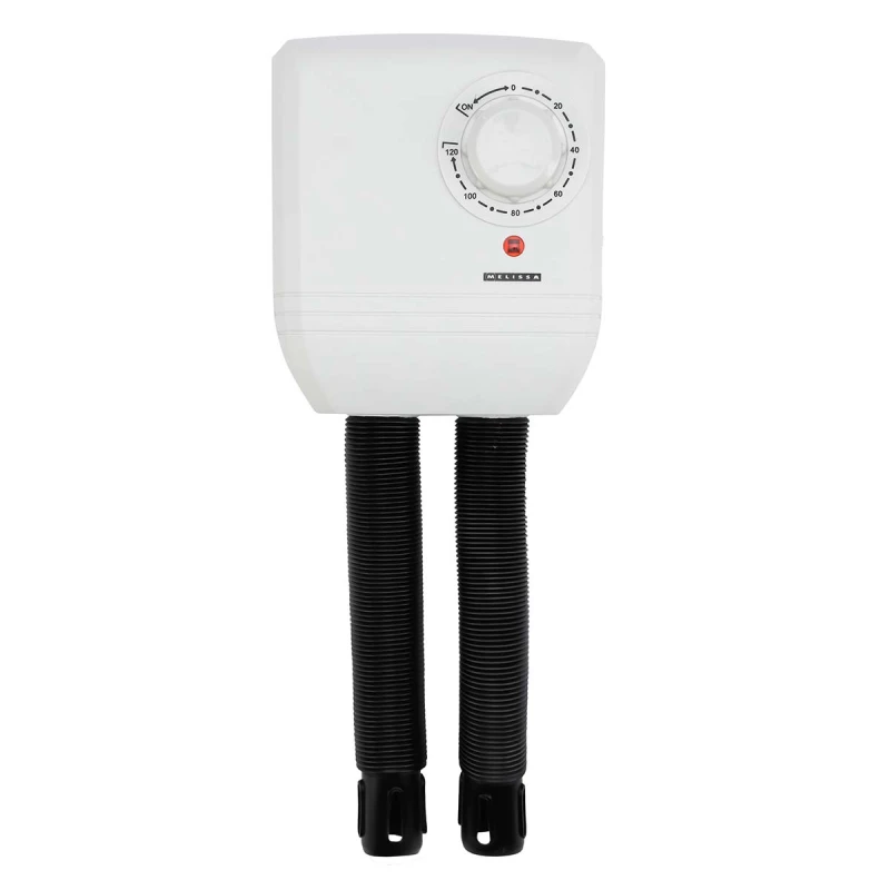 The Melissa 16540009 is a 250W electric dryer designed for the efficient and hygienic maintenance of wet footwear and accessories. It utilizes a warm air flow system to quickly remove moisture while preventing bacterial growth and unpleasant odors.