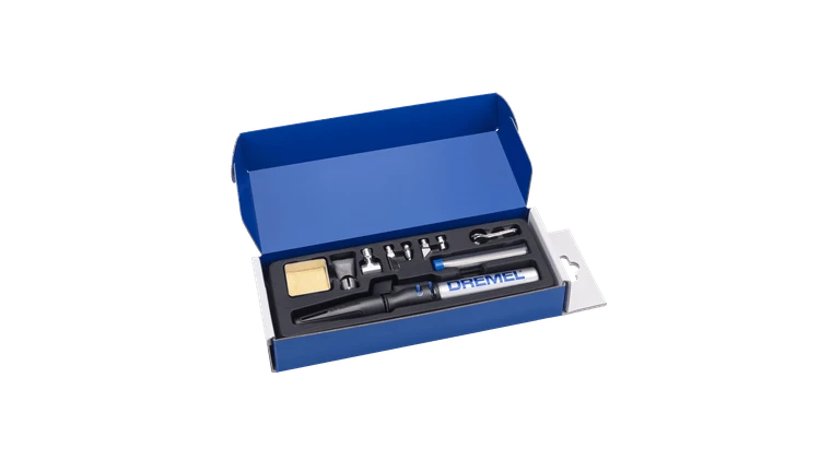 The set includes 7 accessories for six different applications: soldering, pyrography, hot cutting, heat embossing, paint removal, and welding.