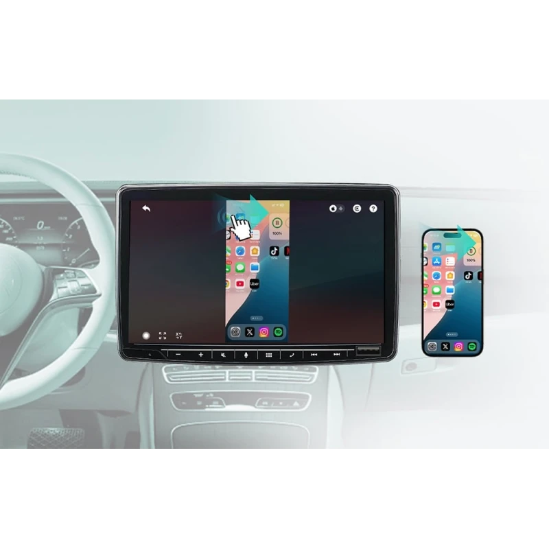 The Ottocast Mirror Touch (CA450) is a versatile adapter designed to convert factory-wired CarPlay systems into wireless while adding high-performance smartphone mirroring capabilities. This device enhances the in-car experience by allowing seamless integration and control of mobile applications directly through the vehicle's original display.