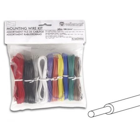 full core, 0.2mm²colours: 5 metres : white / blue / brown / green / yellow / orange / grey / violet + 10 metres : black / redAWG24internal Ø: 7 x 0.193mm (0.2mm²)external Ø: 1.4mmmax. voltage: 60Vmax. current: 4.3APVC insulationtinned CU