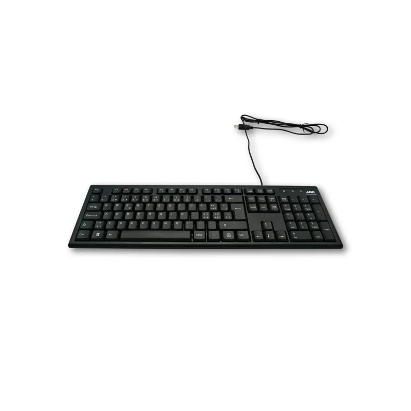 This standard, full-size wired keyboard is designed for reliable general computer input. It utilizes a 105-key configuration and connects seamlessly via USB-A.
