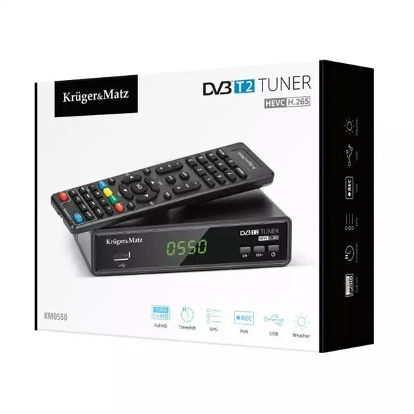 This device enables the reception of digital channels in DVB-T and DVB-T2 standards . What's more, the dvb t tuner Kruger & Matz supports many formats, incl. H.265 HEVC , thus ensuring correct operation even after changes to the encoding standard.