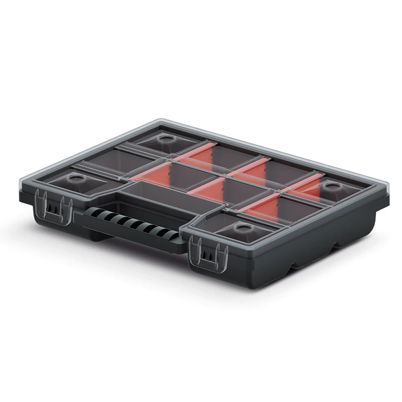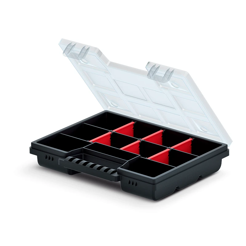 A universal organizer with adjustable compartments that allows you to adjust the size and number of compartments according to your needs. The transparent cover allows you to see what's inside without opening it, and thanks to the strong handle, the organizer can be easily moved to another place.