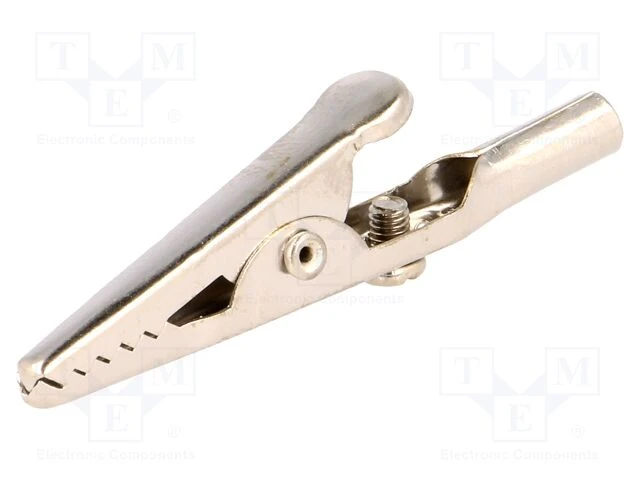 The AXIOMET D-5020 is a non-insulated metal alligator clip designed for establishing temporary electrical connections during measurement and testing tasks. Its durable construction ensures a secure grip for reliable signal transmission in low-voltage environments.