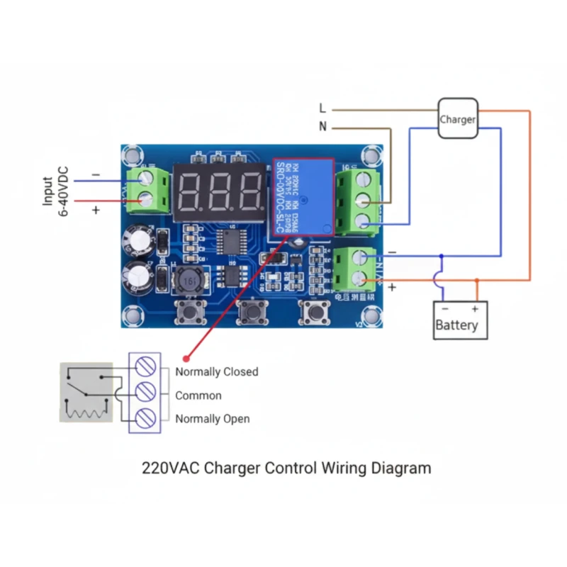 - Relay Output: Utilizes an onboard relay to reliably switch the connected load or charging source.