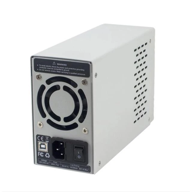 - Display shows set and actual voltage/current, output power, and operating time.