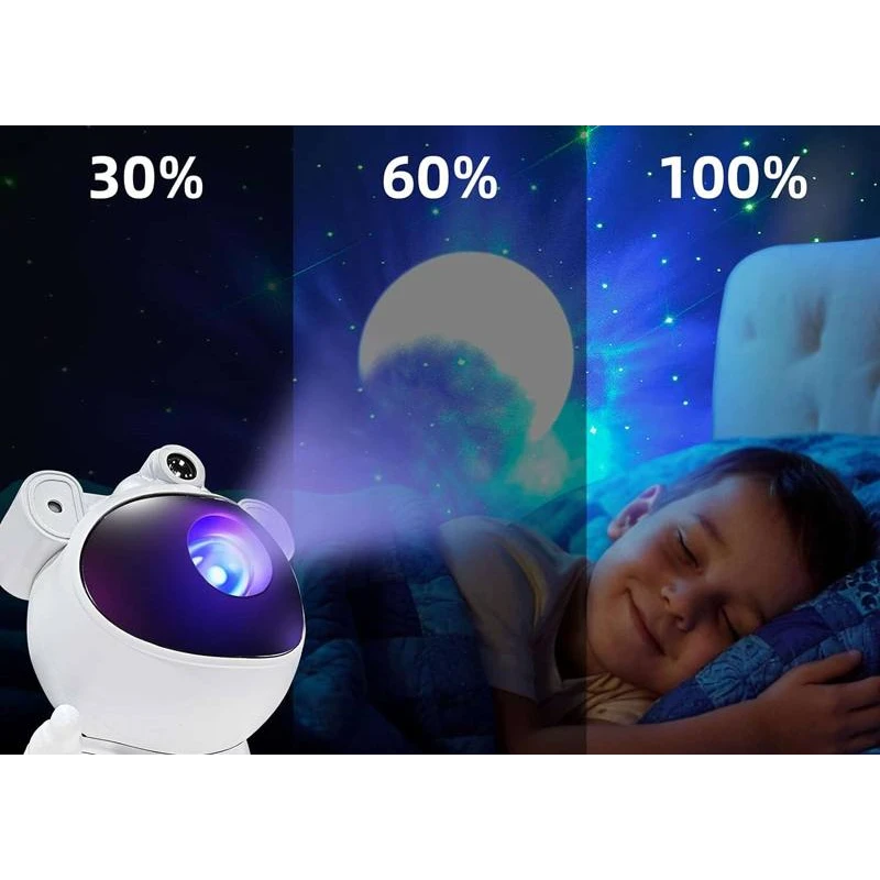 Light up your nights with the magic of the cosmos! This charming astronaut-shaped night light brings a cosmic atmosphere to any room, creating a stunning light show on the ceiling and walls. It's the perfect gadget for a child's room or a unique gift for adults.