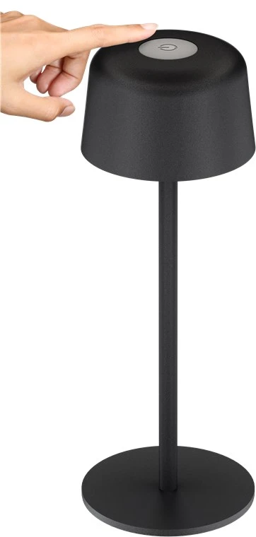 This versatile, battery-powered table lamp features a sleek black finish and provides a portable lighting solution for various environments. The cordless design is powered by an energy-efficient 2W LED, delivering a brightness of up to 150lm. It emits a warm white light at a color temperature of 3000K, creating a comfortable and inviting atmosphere.