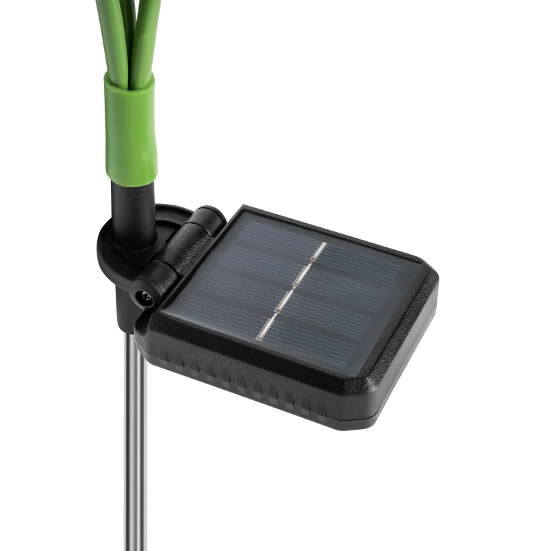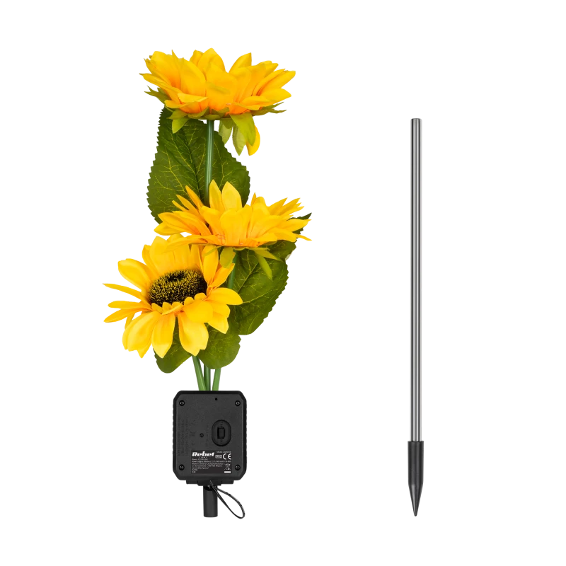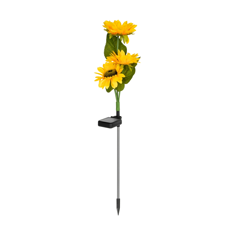 A unique LED garden lamp in the shape of a sunflower, adding color and light to your garden.