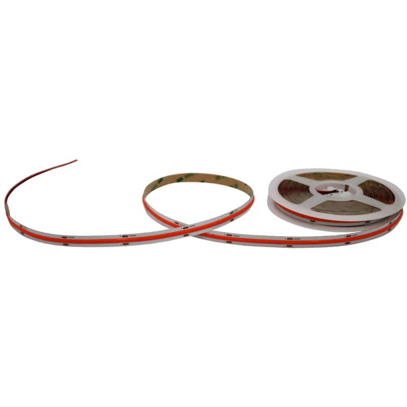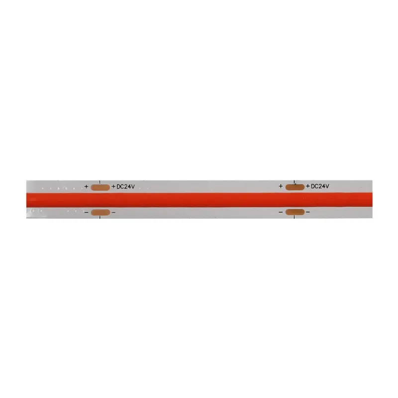 This professional COB LED strip delivers a vibrant red light with a seamless, dot-free effect. Unlike traditional SMD strips, the COB (Chip on Board) technology allows for a continuous line of light, making it the perfect choice for high-end architectural accents and decorative installations where aesthetic perfection is required. With an impressive density of 480 LEDs per meter, the light output is exceptionally uniform and smooth.