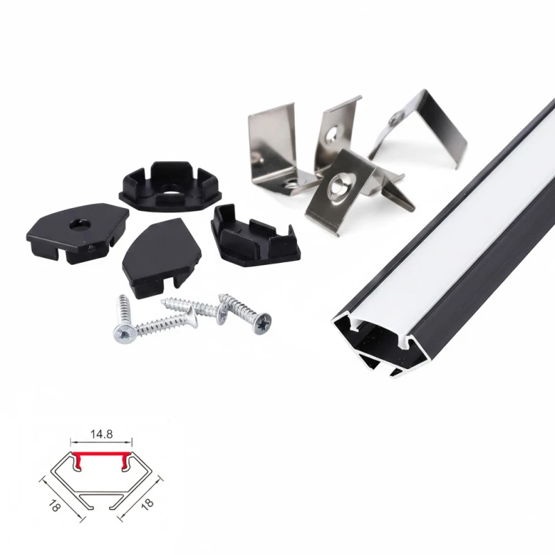 This complete LED profile set is expertly designed for corner installations, offering a sleek and professional finish to any lighting project. The durable anodized aluminum construction serves as a high-performance heat sink, efficiently dissipating thermal energy from the LEDs to ensure a long and stable lifespan. The included milky PC diffuser softens the light to create a smooth, continuous line while protecting the LED strip from dust and mechanical damage.