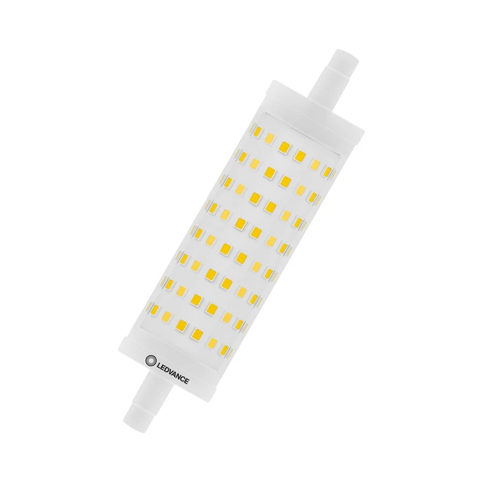 The LEDVANCE LED LINE R7s DIM P is a high-performance, energy-efficient LED alternative to conventional R7s lamps. Designed with an excentric base, this bulb fits easily into most existing R7s luminaires, making it a versatile choice for upgrading your lighting system. It provides excellent all-around light emission with a wide 300-degree beam angle, ensuring consistent brightness across various spaces.