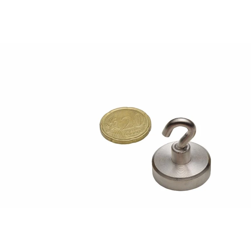 Magnet d=25.3mm N38 M4 with hanging hook Black 16kg