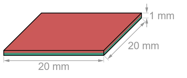 Dimensions (LxWxH): 20.0 mm x 20.0 mm x 1.0 mm