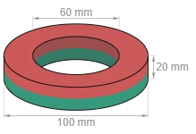 This ring magnet made of ferrite has an outer diameter of 100 mm, an inner diameter of 60 mm and a height of 20 mm. It has an adhesive force of approx. 16 kg and is ideal for outdoor, industrial, arts and crafts, or DIY projects of any kind.
